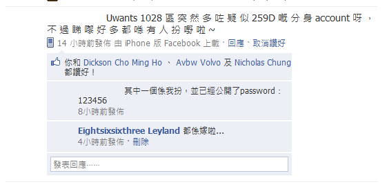 一分鐘過後,AVBWU1@887又開新文表示「再罵259D,我會叫259D報警署(處)理,請不要再罵 259d」,兩篇文章發表後,即時引起一眾Uwants MM2區的版友討論,有版友表示文中「署理」的「署」字打錯,引起版友恥笑,更指出他是一個報警撚。