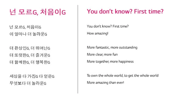 LG Optimus G Pro廣告歌,為2013年香港網民較為關注的廣告歌,原曲為《G Pro Song》,以韓文唱出,因其歌詞不斷以G結尾,而令人留下深刻印象。